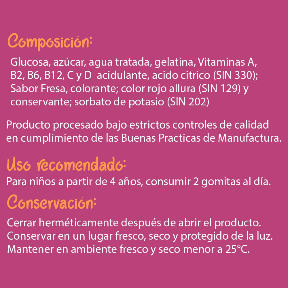 No sobrepasar la cantidad diaria recomendada. No consumir en estado de embarazo, lactancia o en niños menores de: 04 años sin consultar al médico.