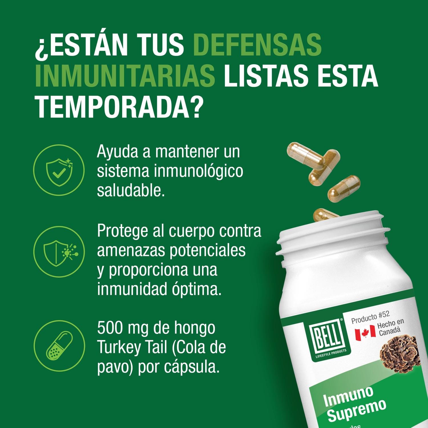Refuerza tus defensas con INMUNO SUPREMO 500 MG de 90 Cápsulas. Fórmula avanzada elaborada con extracto de hongo Turkey Tail (Trametes versicolor), reconocido por su contenido de polisacáridos PSK y PSP, compuestos ampliamente estudiados por su apoyo al sistema inmunológico. Ideal para complementar tu rutina diaria de bienestar y mantener un sistema inmune saludable.